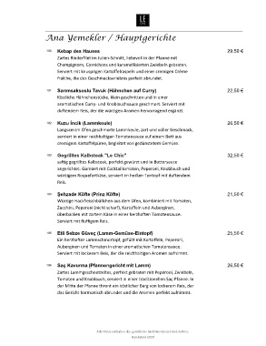 105 Etli Sebze Güveç (Lamm-Gemüse-Eintopf) 25,50 €